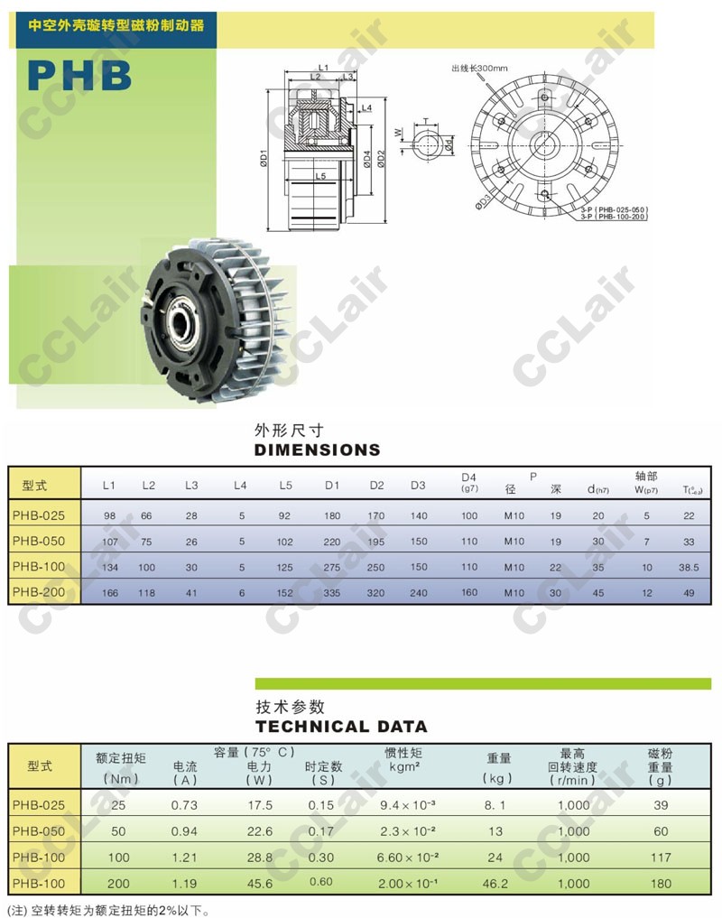 PHB-025,PHB-050,PHB-100,PHB-200,中空外殼璇轉(zhuǎn)型磁粉制動器