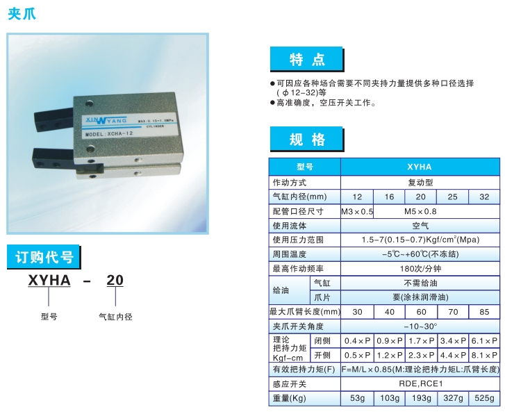 XYHA-12,XYHA-16,XYHA-20,XYHA-25,XYHA-32,夾爪氣缸
