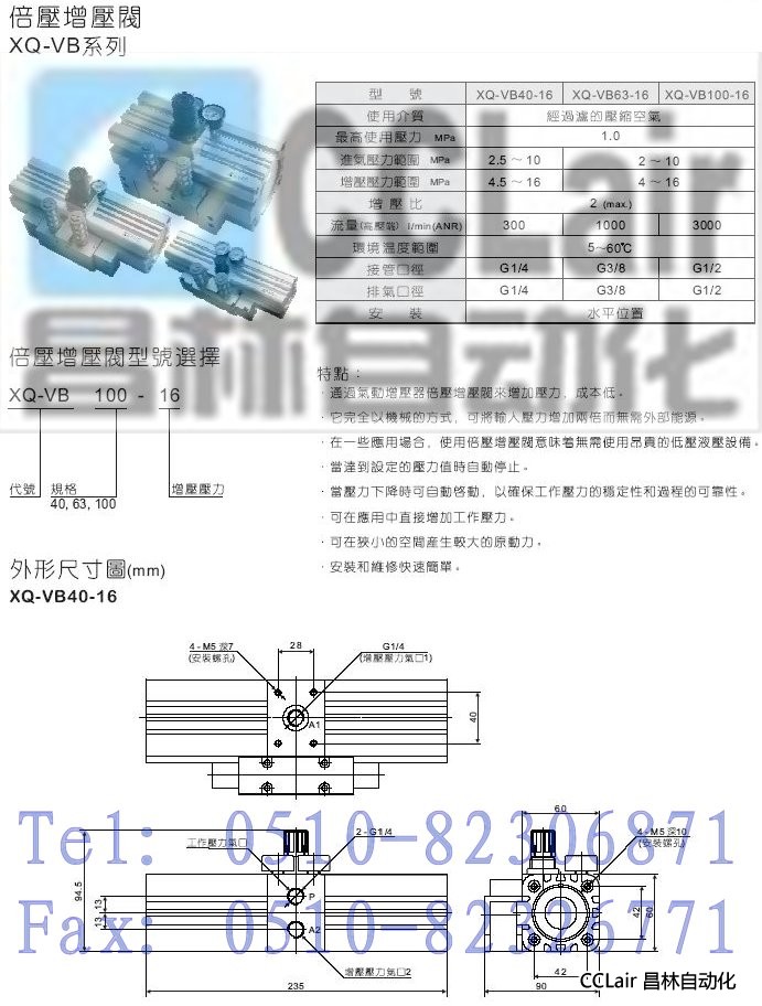 詳細信息 XQ-VB40-16,XQ-VB63-16,XQ-VB100-16,倍壓增壓閥