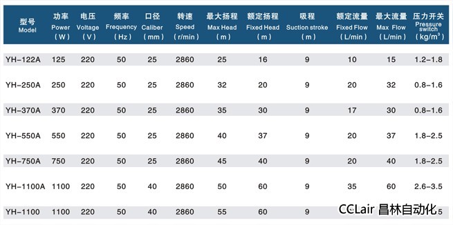 YH-1100A,YH-1100,YH-122A,YH-250A,YH-370A,YH-550A,YH-750A,冷熱水自吸自動增壓泵