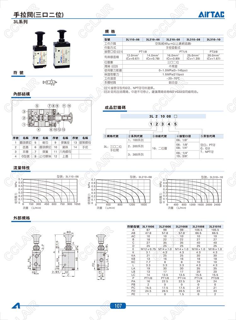 3L110-06,3L210-06,3L210-08,3L310-08,3L310-10,AIRTAC手拉閥