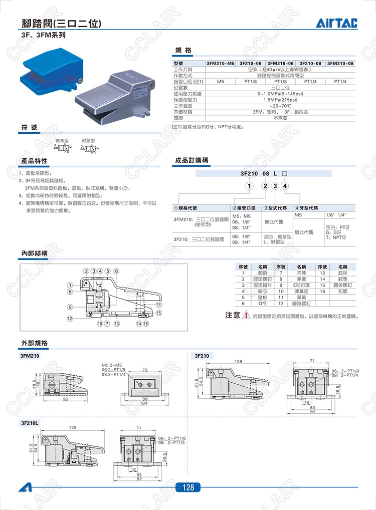 3FM210-M5,3F210-06,3FM210-06,3F210-08,3FM210-08,AIRTAC腳踏閥