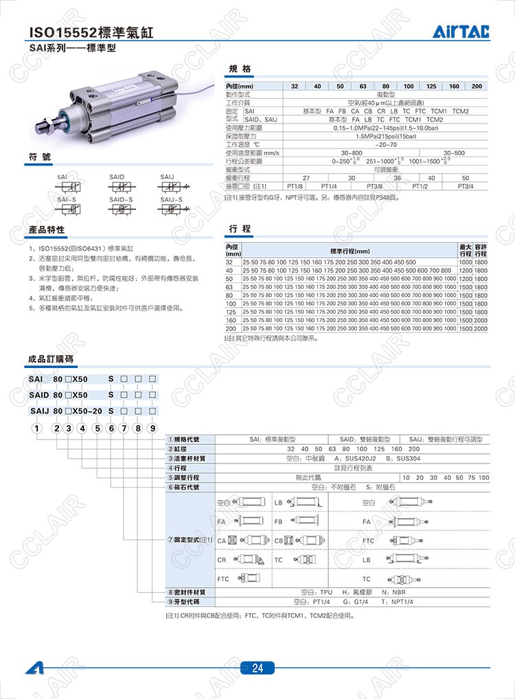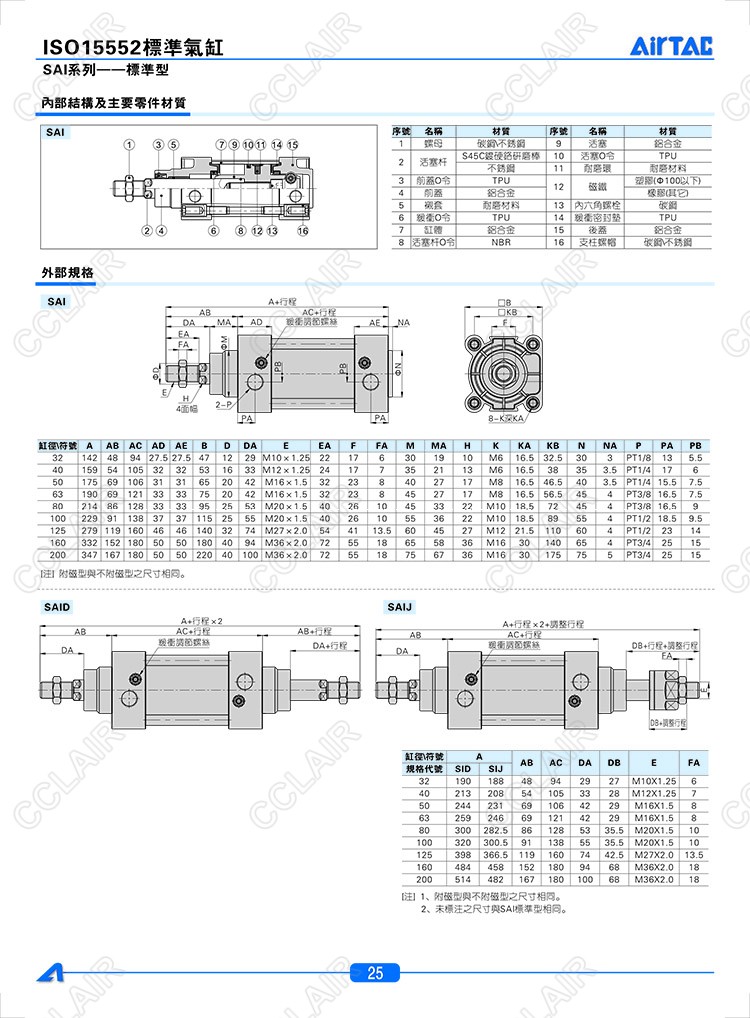 SAI32*25,SAI32*25-S,SAID32*25,SAID32*25-S,SAIJ32*25,SAIJ32*25-S,AIRTAC亞德客標(biāo)準(zhǔn)型氣缸