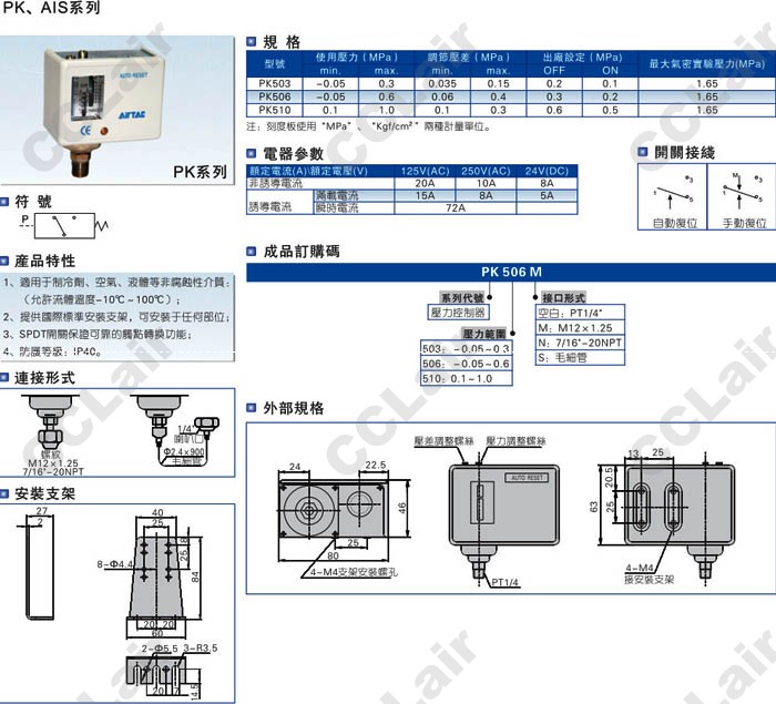 PK503-M,PK503-N,PK503-S,PK506-M,PK506-N,PK506-S,PK510-M,PK510-N,PK510-S,壓力控制器