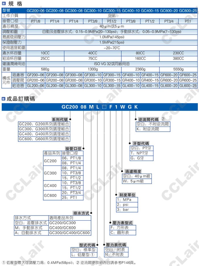 GC300-08-M-L-NF1-W,臺(tái)灣亞德客(AirTAC),GC300-10-M-L-NF1-W,GC300-15-M-L-NF1-W,