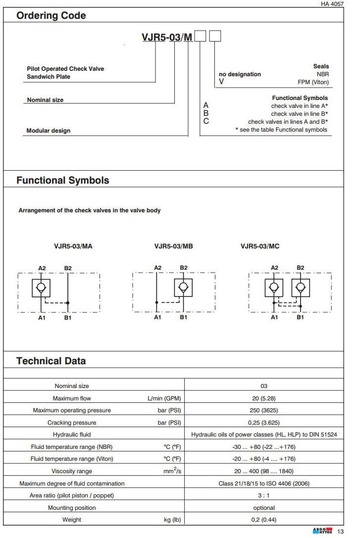 VJR5-03/MA,VJR5-03/MB,VJR5-03/MC,ARGO電磁方向控制閥