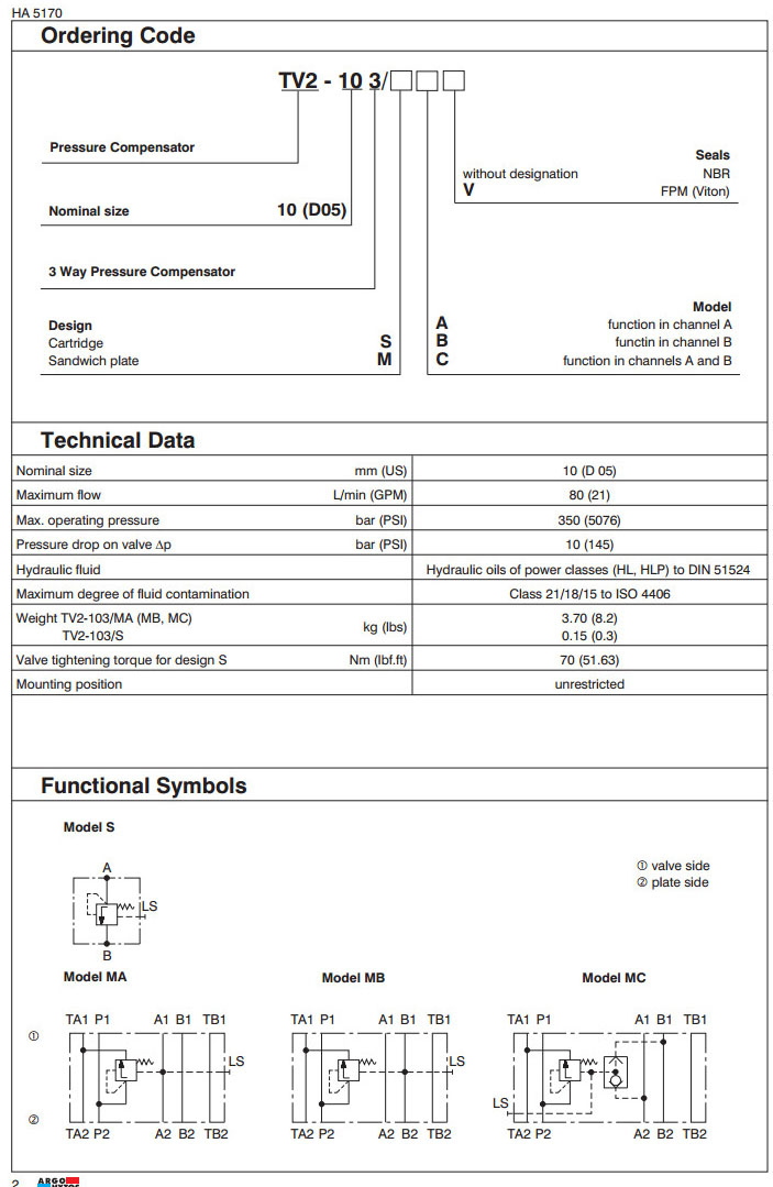 首頁 > 產(chǎn)品&解決方案 > TV2-103/S,TV2-103/MA,TV2-103/MB,TV2-103/MC,ARGO 3路壓力補償器