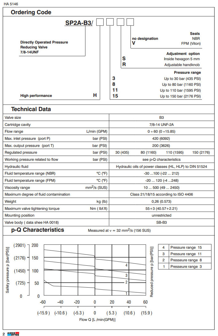 SP2A-B3/H3,SP2A-B3/H8,SP2A-B3/H11,SP2A-B3/H15,ARGO直動式減壓閥