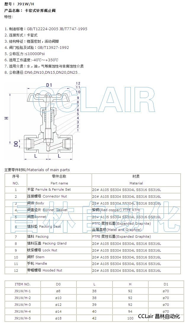 您當(dāng)前的位置:首頁 » 產(chǎn)品&解決方案 » J91W-1,J91W-2,J91W-3,J91W-4,J91W-5, 卡套式針形截止閥