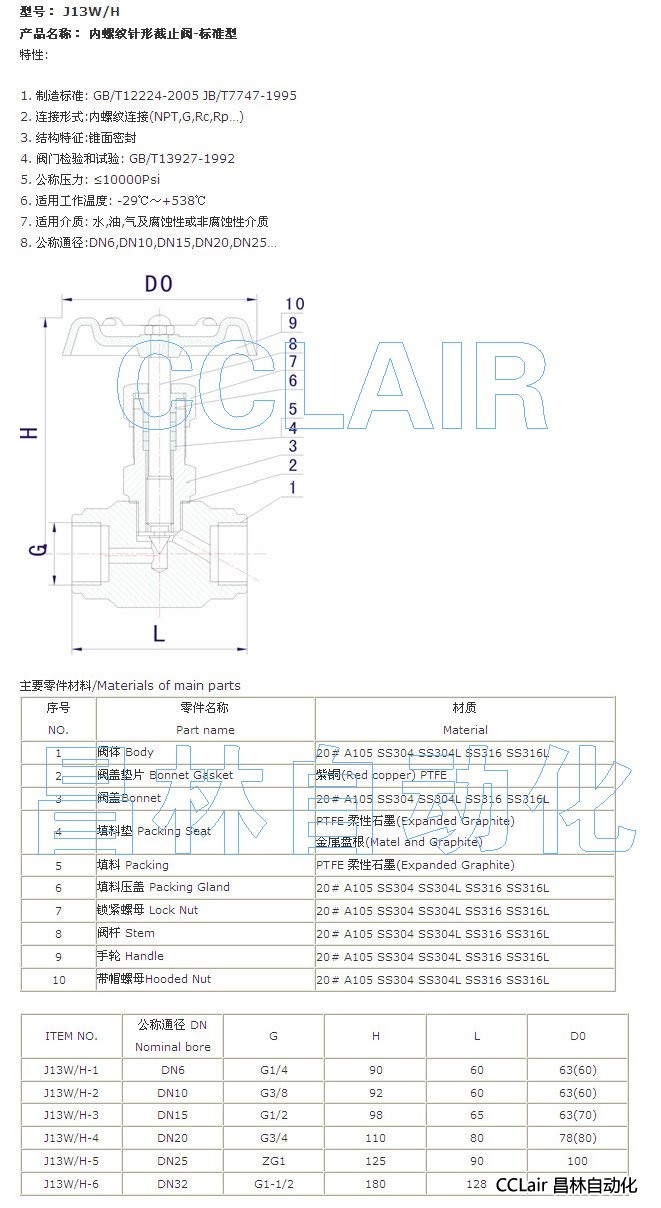 J13W-1,J13W-2,J13W-3,J13W-4, J13W-5,J13W-6, 內(nèi)螺紋針形截止閥-標準型