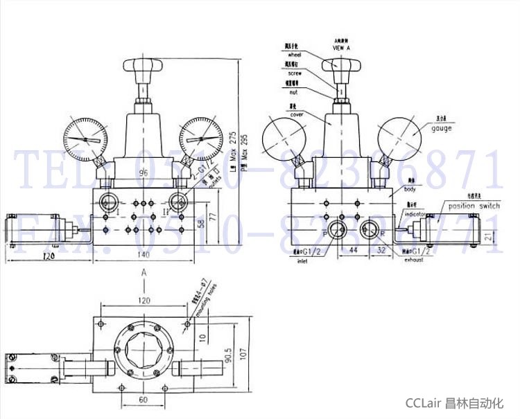 本閥為二位四通自動(dòng)液壓換向閥,上平面設(shè)有兩塊壓力表和調(diào)壓手輪。換向壓力由手輪調(diào)節(jié),順時(shí)針壓力升高,反之壓力降低。本閥門進(jìn)油口P與泵出油口連接,回油口R接貯油桶,供油口Ⅰ、Ⅱ分別與兩條供油管路連接。工作時(shí)當(dāng)Ⅰ路油壓達(dá)設(shè)定壓力,換向閥自動(dòng)切換到Ⅱ路,這樣潤滑泵就能循環(huán)往復(fù)地向兩條管路供送潤滑脂。