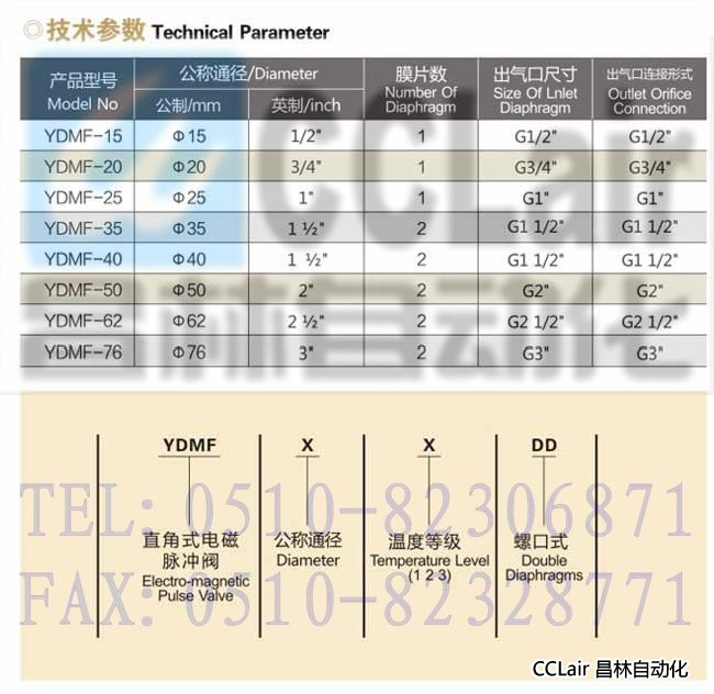詳細(xì)信息 YDMF-40,YDMF-50,YDMF-62,YDMF-76,淹沒(méi)式電磁脈沖閥