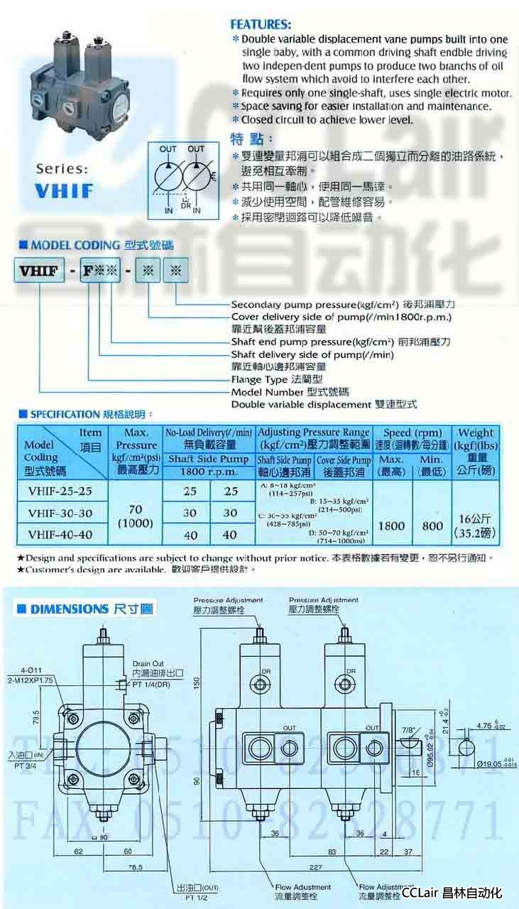 詳細信息 VHIF-25-25,VHIF-30-30,VHIF-40-40,可變雙聯(lián)泵浦