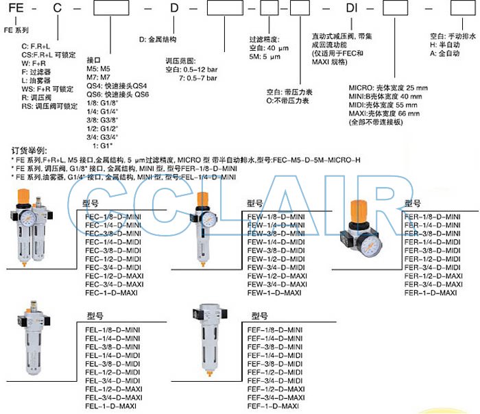 詳細信息 FERS-M5-D,FERS-M7-D,FERS-QS4-D,FERS-QS6-D,FERS-1/8-D,FERS-1/4-D,FERS-3/8-D,氣源處理件