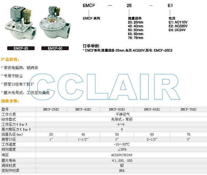 詳細(xì)信息 EMCF-25E1,EMCF-40E1,EMCF-50E2,EMCF-65E2,EMCF-65E4,EMCF-76E4,脈沖閥