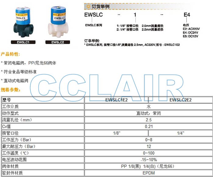 詳細(xì)信息 EWSLC1E2,EWSLC2E2,EWSLC1E4,EWSLC2E4,EWSLC1E5,EWSLC2E5,迷你水閥