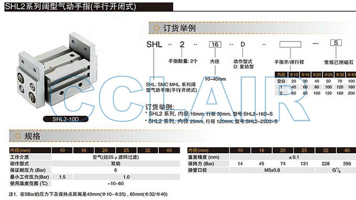 SHL2-10D,SHL2-16D,SHL2-20D,SHL2-25D,SHL2-32D,SHL2-40D,闊型氣動(dòng)手指氣缸