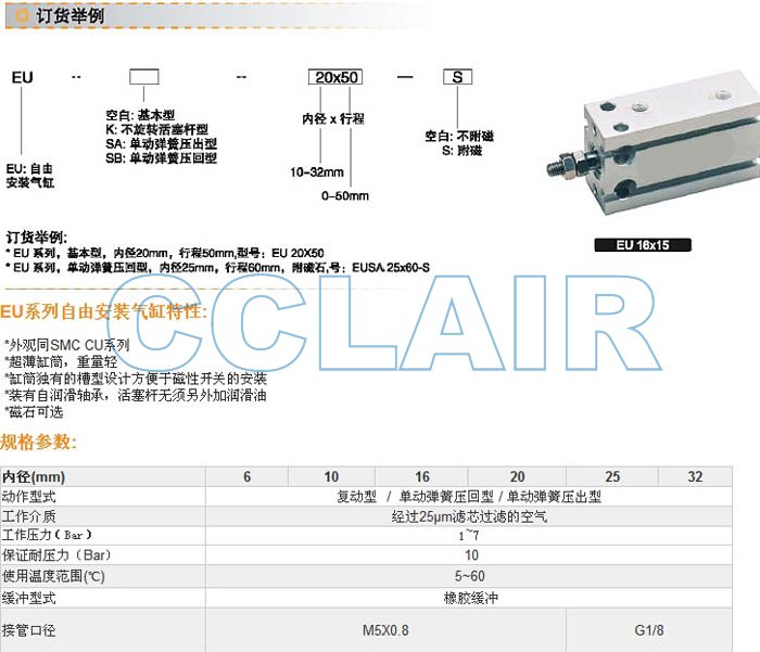 瀏覽次數(shù):1027EU6X50,EUSB6X50,EUK10X50,EU16X50,EU20X50,EU25X50,EU32X50,薄型氣缸 |