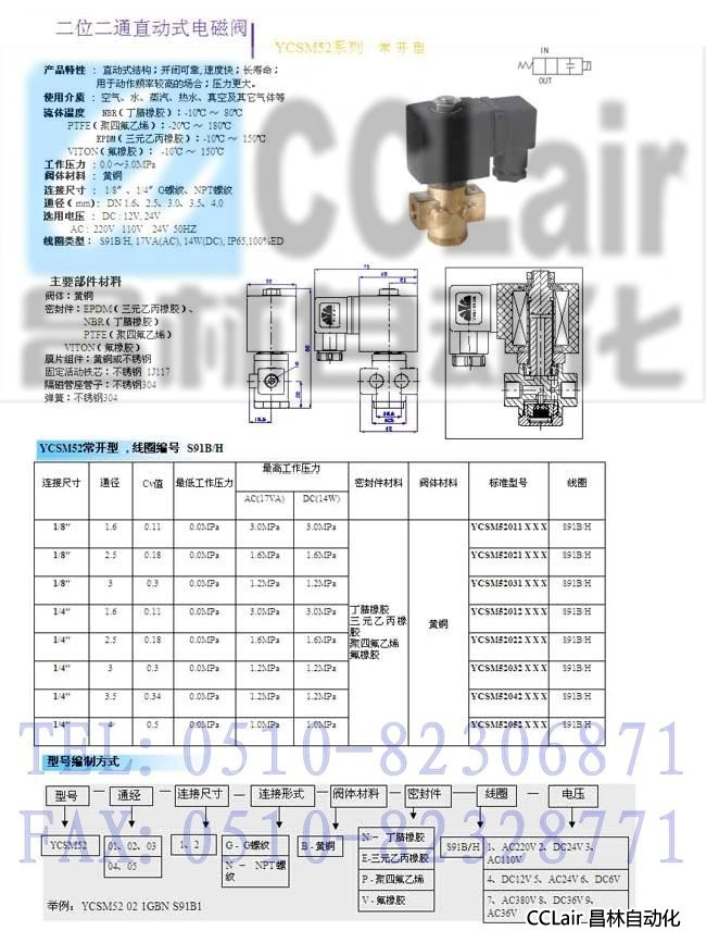 YCSM52011,YCSM52012,YCSM52021,YCSM52022,YCSM52031,二位二通直動式電磁閥
