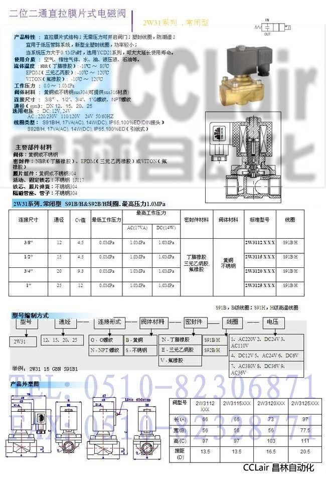 2W3112,2W3115,2W3120,2W3125,二位二通直拉膜片式電磁閥
