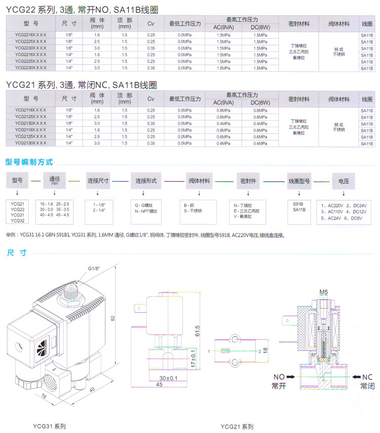 詳細信息 YCG21,YCG22,YCG31,YCG32,YCG2216,YCG2116,YCG2130,YCG2225,YCG3116,YCG3125,YCG3230,直動式電磁閥 YCG2125,YCG3130,YCG3216,YCG3225,YCG3235,YCG3240,YCG2230,