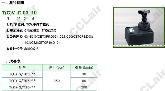 詳細(xì)信息 TCV-G03-10,TCV-G06-10,TCV-G10-10,TCV-T03-10,TCV-T06-10,TCV-T10-10,TV-G03-10,TV-G06-10,節(jié)流閥