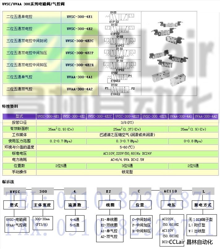 詳細信息 UVSC-300-4E1,UVSC-300-4E2,UVSC-300-4E2C,UVSC-300-4E2P,UVSC-300 4E2R,電磁閥