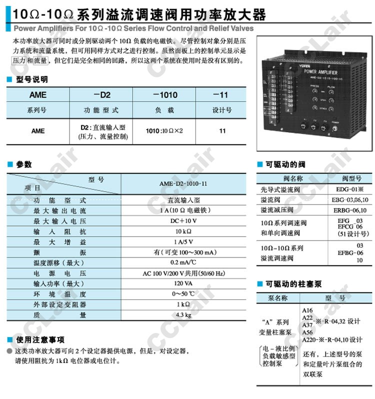 AME-D2-1010-11,溢流調(diào)速閥用功率放大器,YUCIYUKEN榆次油研