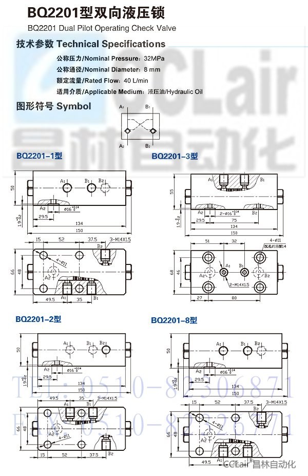 BQ2201-1,BQ2201-2,BQ2201-3,BQ2201-8,雙向液壓鎖