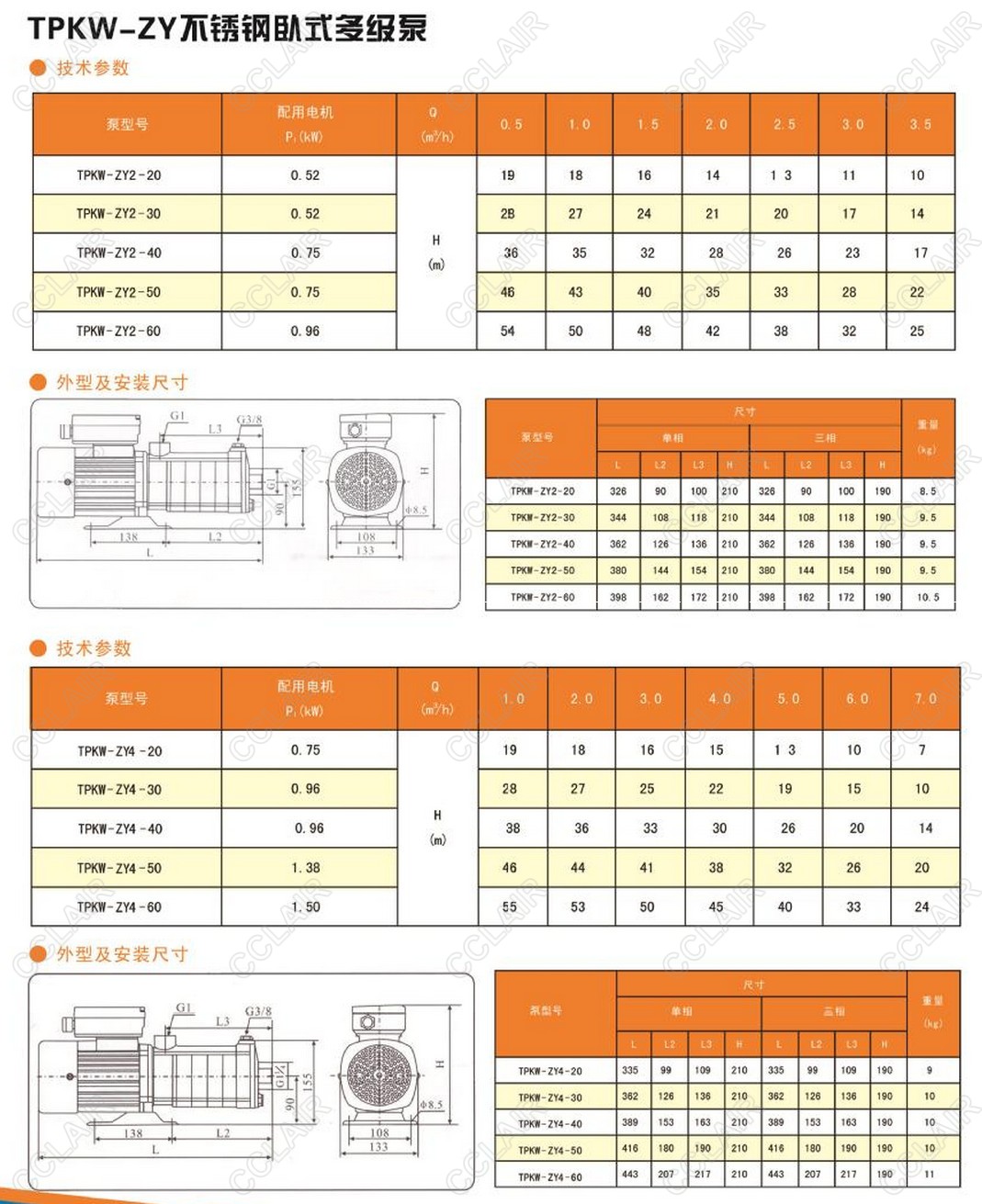 TRKW-ZY2-20,TRKW-ZY2-30,TRKW-ZY2-40,TRKW-ZY2-50,TRKW-ZY2-60,TRKW-ZY,不銹鋼臥式多級泵