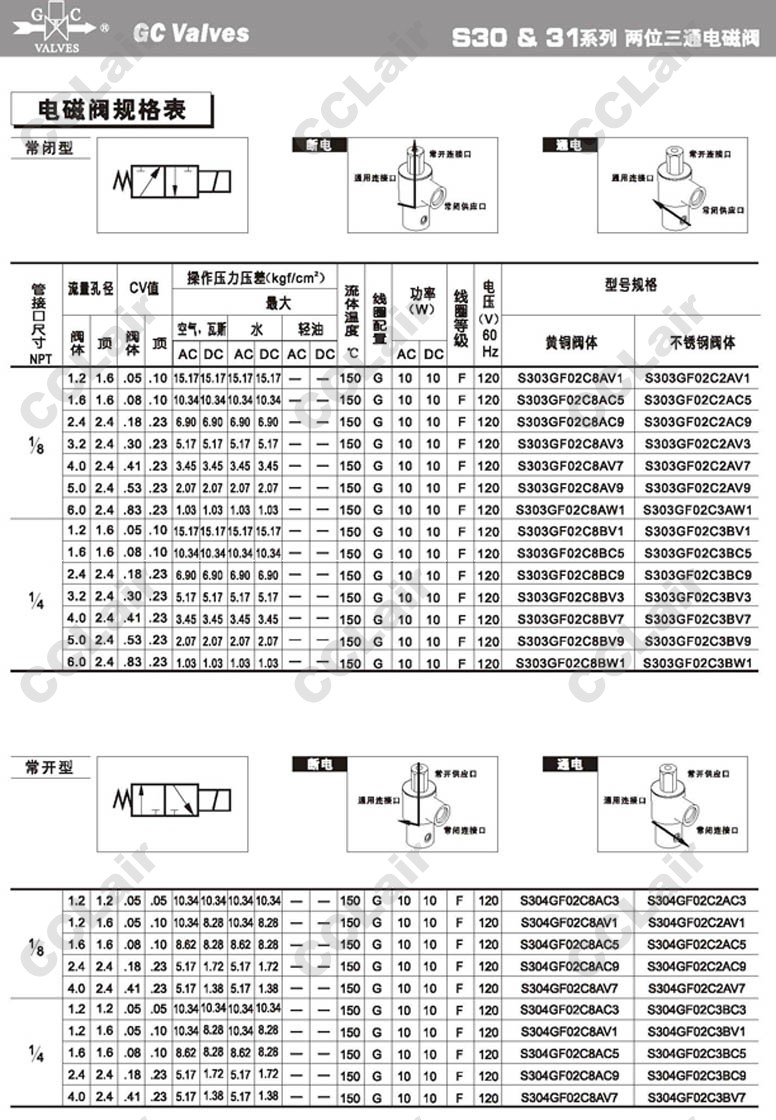S303GF02C2AV7,S303GF02C2AV9,S303GF02C2AW1,GC Valves S303GF02C2BV1,S303GF02C2BC5,S303GF02C2BC9,