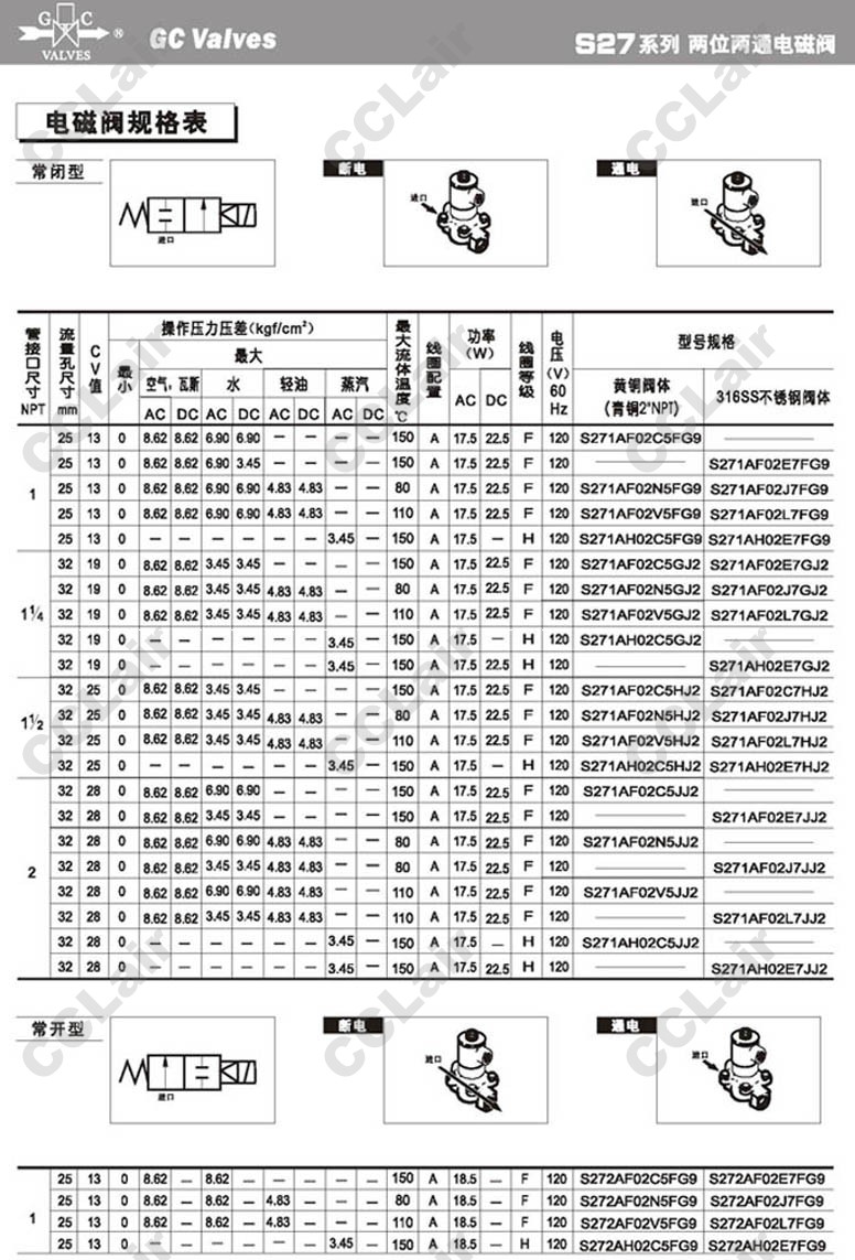 S271AF02L7FG9,S271AH02E7FG9,S271AF02E7GJ2,S271AF02J7GJ2,GC Valves S271AF02L7GJ2,S272AF02L7JJ2,