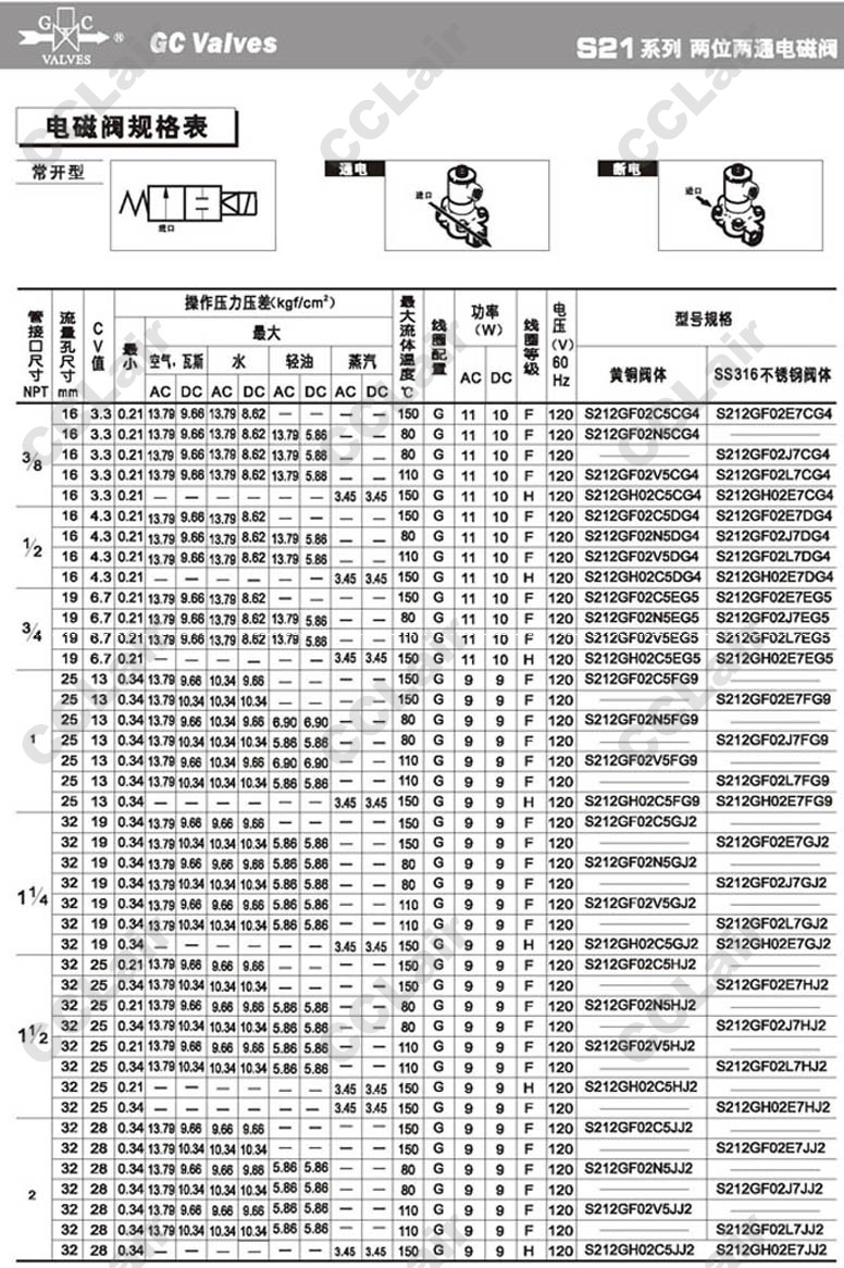 S211GF02C5FG9,GC Valves S211GF02N5FG9,S211GF02V5FG9,S211GH02C5FG9,S211GF02C5GJ2,S211GF02N5GJ2,