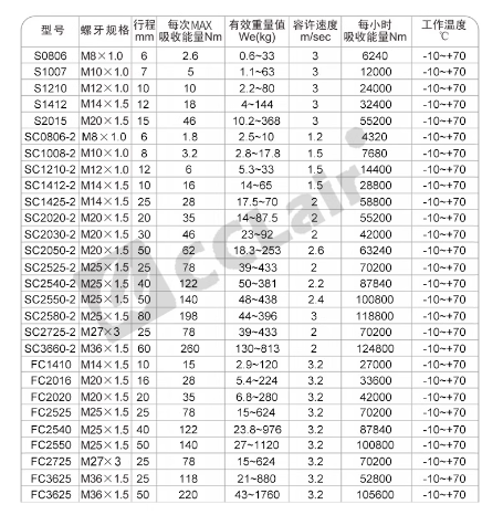 S0806NC,S1007,S1007NC,S1210,S1210NC,S1412,S1412NC,S2015,S2015NC,FC1410,FC2016,FC2020,FC2025,FC2540,FC2550,FC2725,FC3625,FC3650,SC0806-2,SC1008-2,SC1210-2,SC1412-2,SC1415-2,SC2020-2,SC2030-2,SC2050-2,SC2525-2,SC2540-2,SC2550-2,SC2580-2,SC2725-2緩沖器