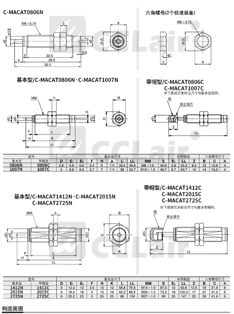 C-MACAT0806N,C-MACAT1007N,C-MACAT1210N,C-MACAT1412N,C-MACAT2015N,C-MACAT2525N,C-MACAT2725N,C-MACAT0806C,C-MACAT1007C,C-MACAT1210C,C-MACAT1412C,C-MACAT2015C,C-MACAT2525C,C-MACAT2725C,C-MAKC0806,C-MAKC1005,C-MAKC1008緩沖器 詳細(xì)信息