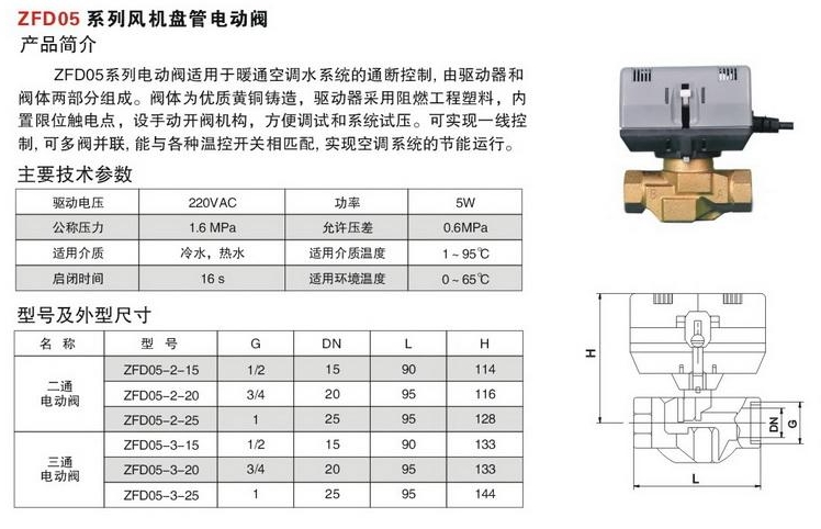 ZFD05-2-15,ZFD05-2-20,ZFD05-2-25,ZFD05-3-15,ZFD05-3-20,ZFD05-3-25,風機盤管電動閥