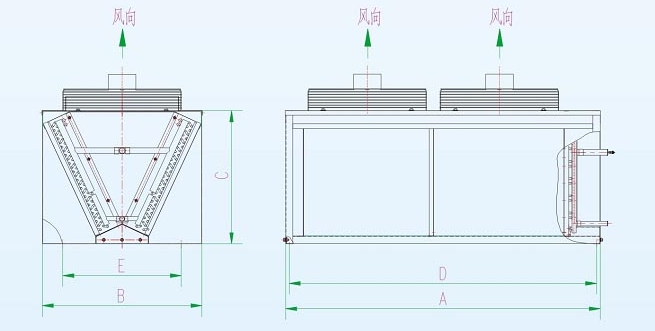 ZJYT V型冷凝器器技術(shù)參數(shù)、外形尺寸及安裝尺寸