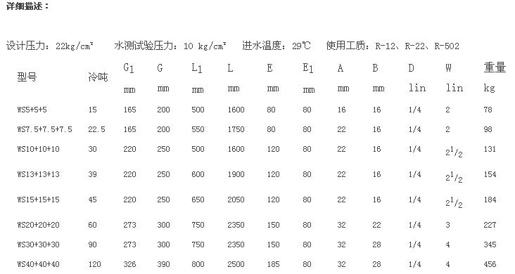 詳細信息 WS5+5+5,WS7.5+7.5+7.5,WS10+10+10,WS13+13+13,WS15+15+15,三回路冷凍機冷凝器 WS20+20+20,WS30+30+30,WS40+40+40,