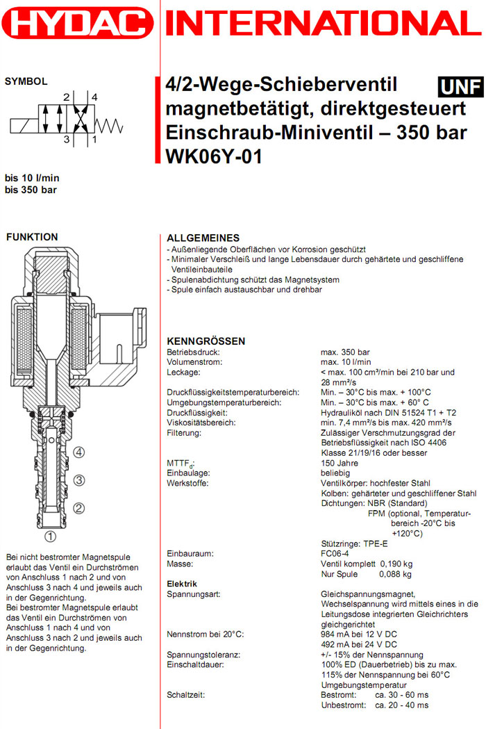 WK06Y-01-C-N-0,HYDAC電磁4/2方向滑閥