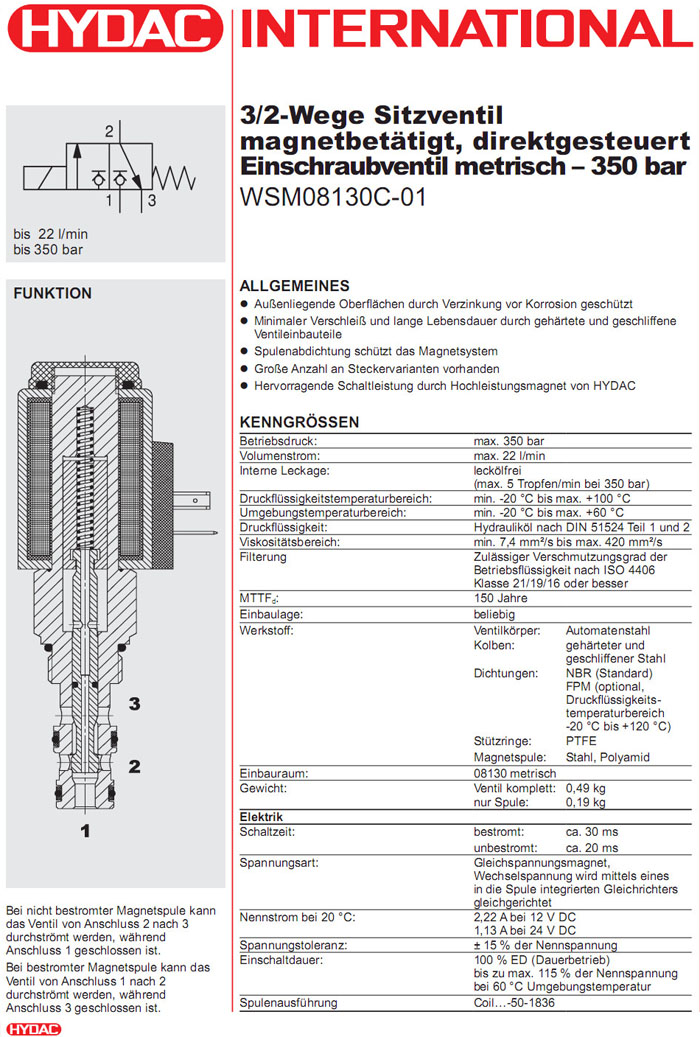 WSM08130C-01-C-N-12DG,WSM08130C-01-C-N-24DG,WSM08130C-01-C-N-230AG,HYDAC二位三通方向提升閥 |
