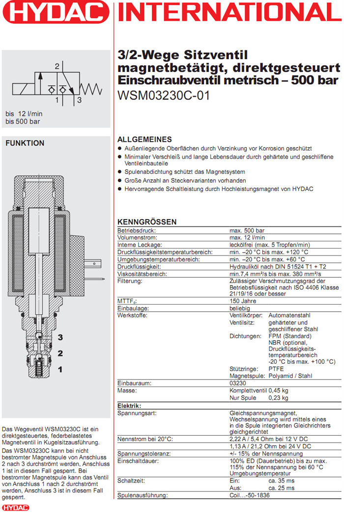 WSM03230C-01-C-V-12DG,WSM03230C-01-C-V-24DG,WSM03230C-01-C-V-230AG,HYDAC二位三通方向提升閥