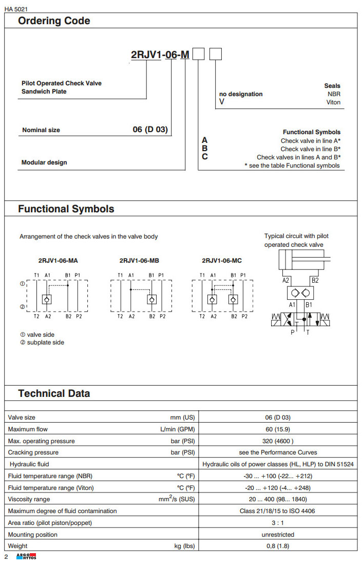 2RJV1-06-MA,2RJV1-06-MB,2RJV1-06-MC,ARGO液控單向閥