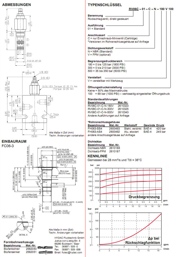 RV06C-01-C-N-180V,RV06C-01-C-N-300V,RV06C-01-C-N-500V,HYDAC止回閥