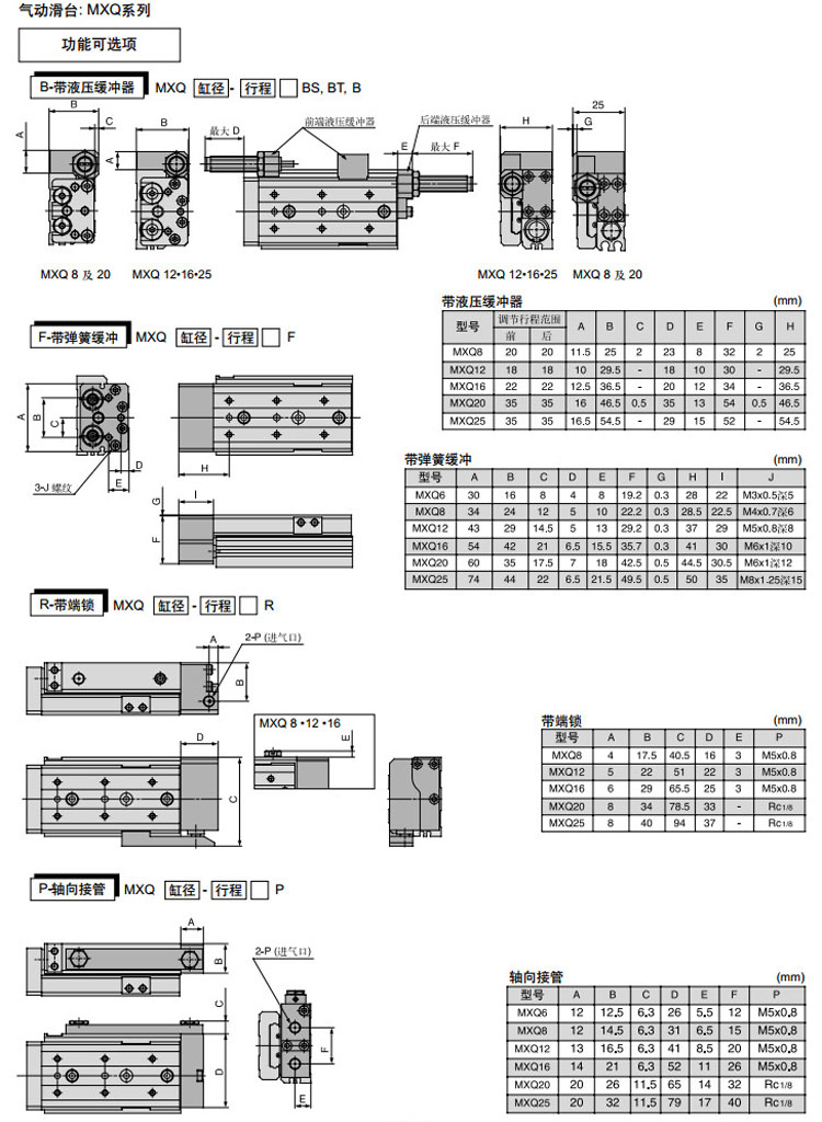 MXQ6-10,MXQ8-10,MXQ12-10,MXQ16-10,MXQ20-10,MXQ25-10,MXQ6-20,SMC氣動滑臺氣缸