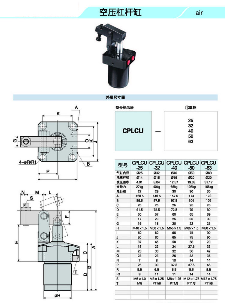 CPLCU-25,CPLCU-32,CPLCU-40,CPLCU-50,CPLCU-63,空壓杠桿缸
