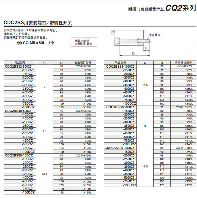 CQ2BS100-10D,CQ2BS100-20D,CQ2BS100-25D,CQ2BS100-30D,CQ2BS100-35D,CQ2BS100-40D,CQ2BS100-50D,CQ2BS100-75D,CQ2BS100-100D,