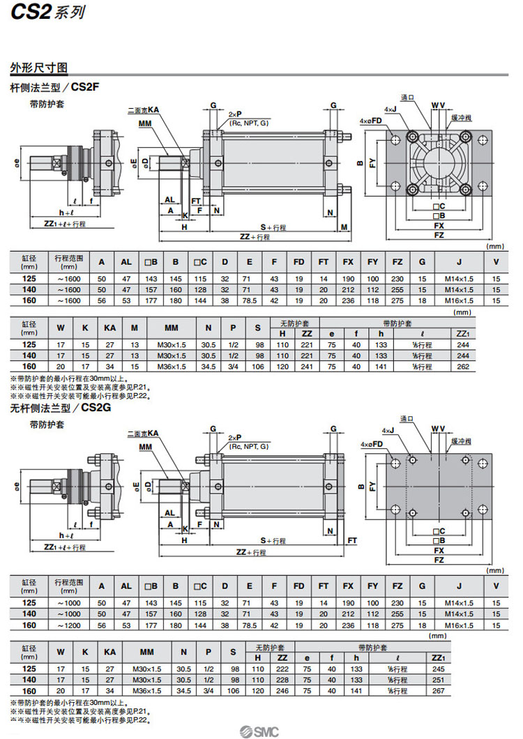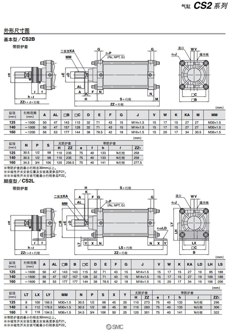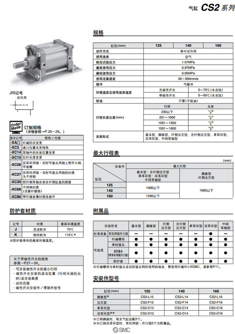 CDS2B125-300,CDS2L125-300,CDS2F125-300,CDS2G125-300,CDS2C125-300,CDS2D125-300,CDS2T125-300,SMC低摩擦型氣缸