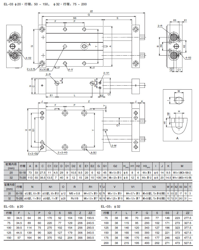 EL-03M-10,EL-03M-16,EL-03M-20,EL-03M-25,EL-03M-32,滑動(dòng)氣缸
