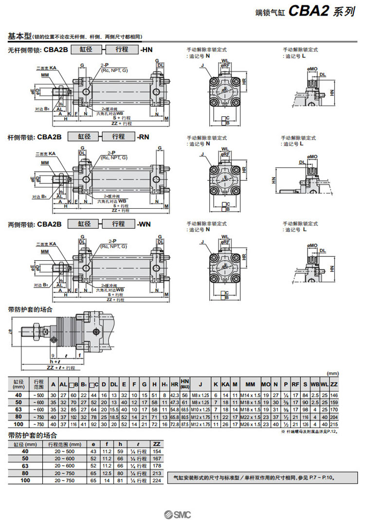CBA2B40-25,CBA2L40-25,CBA2F40-25,CBA2G40-25,CBA2C40-25,CBA2D40-25,CBA2T40-25,SMC端鎖氣缸