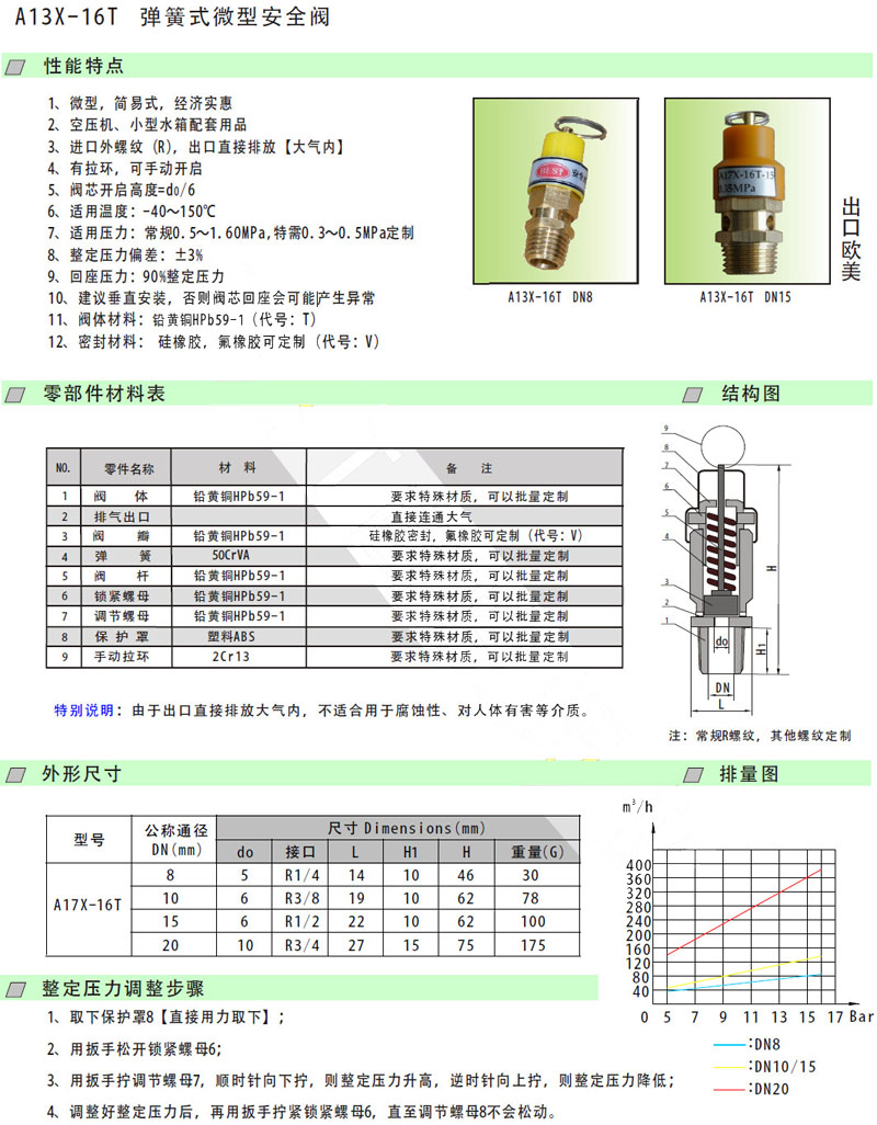A13X-16T-DN8,A13X-16T-DN10,A13X-16T-DN15,A13X-16T-DN20,彈簧式微型安全閥 |